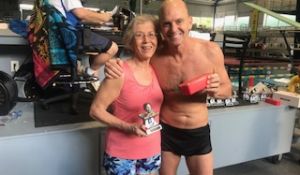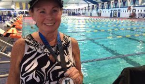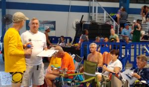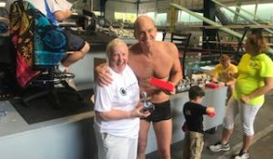 Elayne Bartholomew and Joanne Stewart captured high point awards for their age groups and received their awards from Rowdy Gaines an Olympic Swimmer. Bartholomew captured 144 points in addition to relay places.